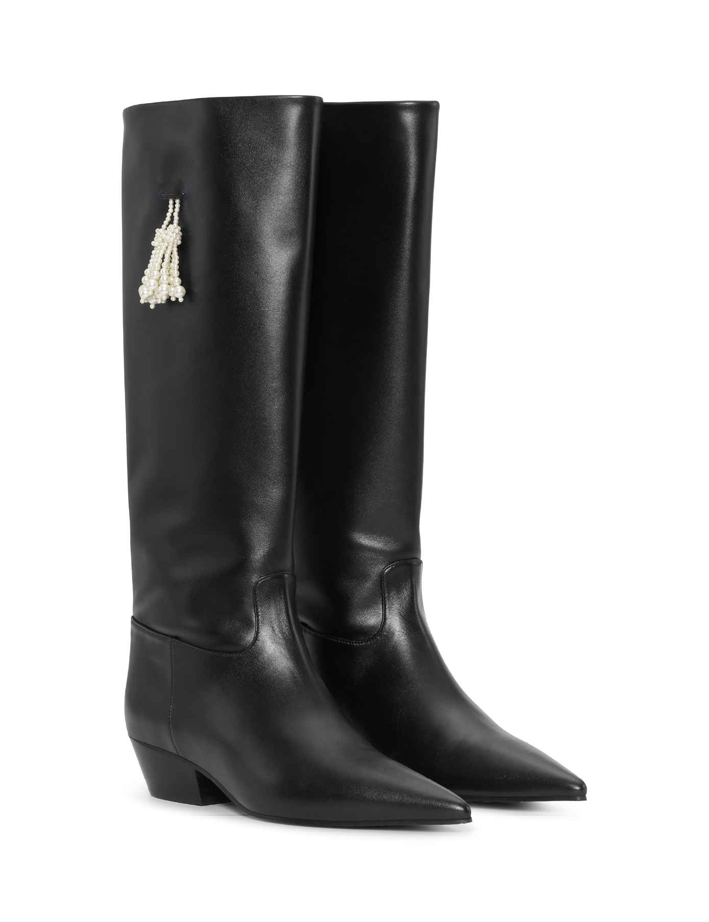 Vianelle Tassel is the boot that moves like your favourite song – soft leather, clean lines, and a single pearl tassel that turns every step into a dance move.